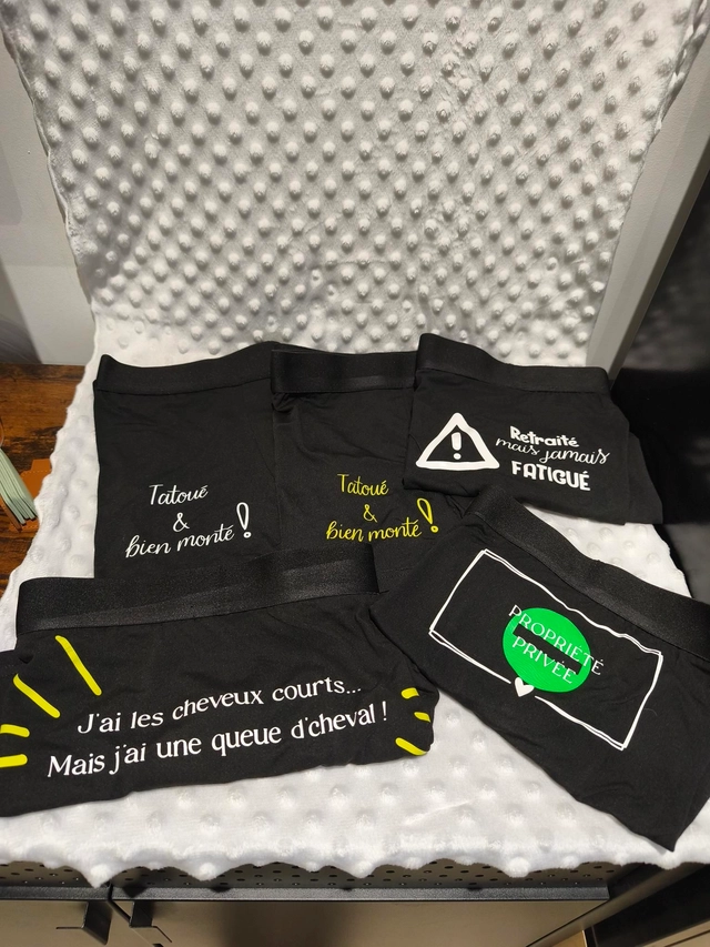 Créer un boxer unique avec votre texte, un mot d’amour ou une touche humoristique. Parfait pour un cadeau original et surprenant.