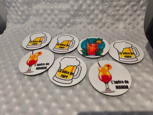 Personnalisez vos dessous de verre avec texte, photo ou humour! Accessoire unique.