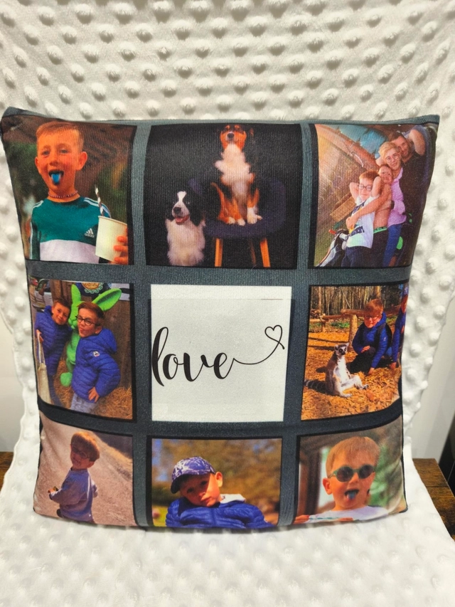 Personnalise la housse d’un coussin avec texte et/ou photo pour créer un objet unique, à offrir ou à s’offrir.